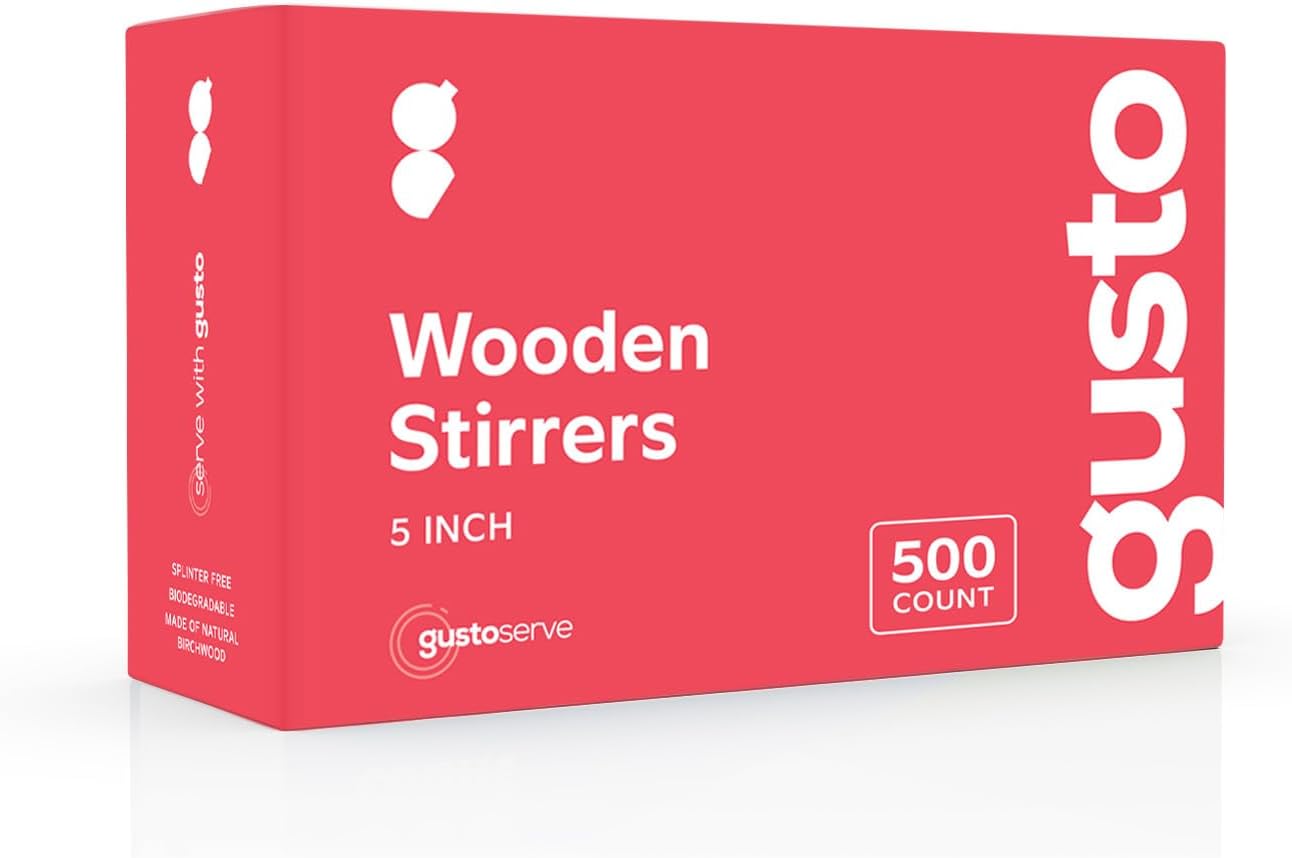 Gusto [500 Count] 5.5 Inch Wooden Coffee Stirrers – Wood Stir Sticks, Biodegradable, Eco-Friendly Wood Stirrers for Coffee & Cocktails – Formerly Comfy Package