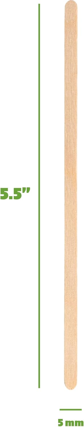 Comfy Package Wood Coffee Stirrers are made of Birch Wood, measure 5.5 inches, have rounded edges and come in the convenient amount of 500 count per pack Performs well for all stirring needs such as creamer, sugar and milk in coffee, honey in tea, or blending a powder into drink for both hot and cold beverages. Great coffee stir sticks to have stocked at any event or party and in your Tea, Coffee or Break Room, Restaurant, Bar, Cafe, Coffee Station, Office or Home. Quality and ethical disposable alternative to plastic coffee stirrers without the work of spoons to wash after having a cuppa. The smooth Birch Wood coffee stir sticks which are chemical and coating free makes it sturdy, biodegradable and healthy. Smooth finish which won’t splinter or break plus round shape avoids injuries or puncturing of cup. Acts great for other stirring or mixing purposes besides as wooden coffee stirrers, such as Epoxy, Craft Sticks for Arts N’ Crafts uses and as Popsicle Sticks. Convenient option for on-the-go, Traveling or Camping. Easy and simple to use, can handle high temperatures without getting soggy or leaving an aftertaste. Wooden stir stick distributes any ingredient into your beverage evenly for the perfect taste. An essential coffee stirrer tool without the labor afterwards that comes in a pack of 500 pieces of 5.5 inch stirrers makes it both the perfect size to use and amount of coffee sticks to have in stock.
