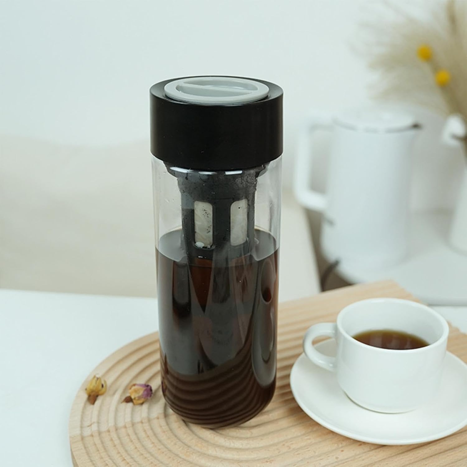 ✅✅✅Simple to Carry: Enjoy your favorite cafe-style cold brew coffee at home or at work with this glass coffee maker. It has sturdy handle that makes it easy to carry around and compact design that fits in any fridge or countertop.