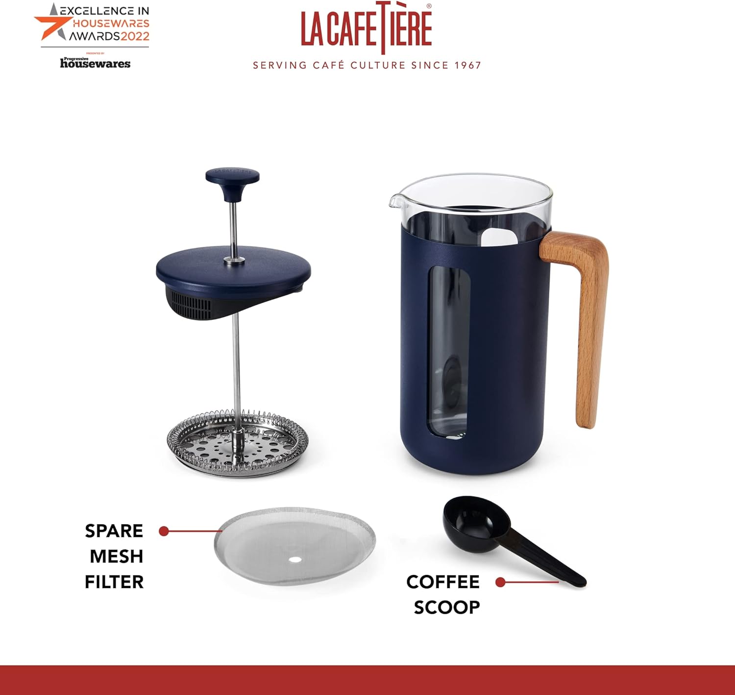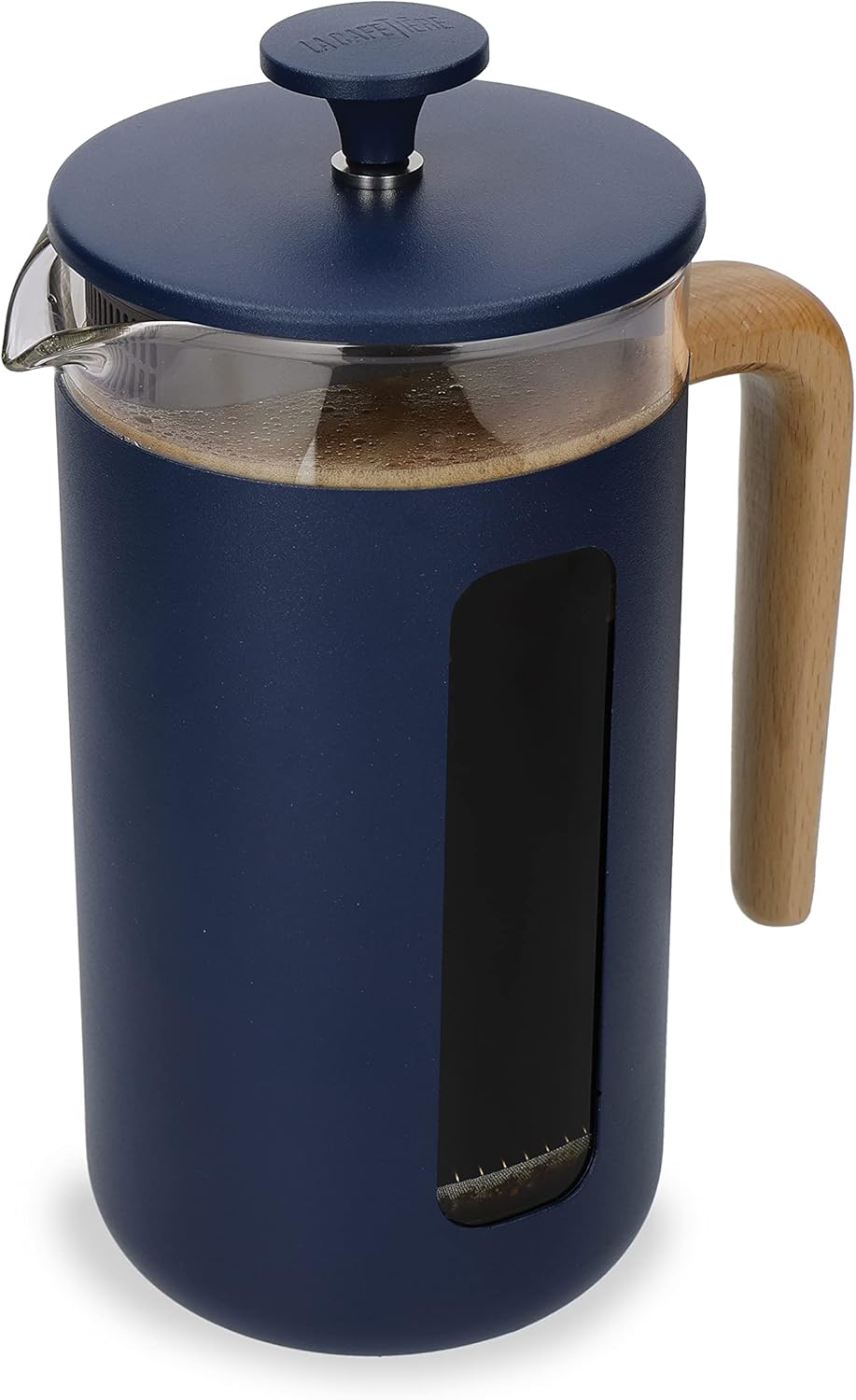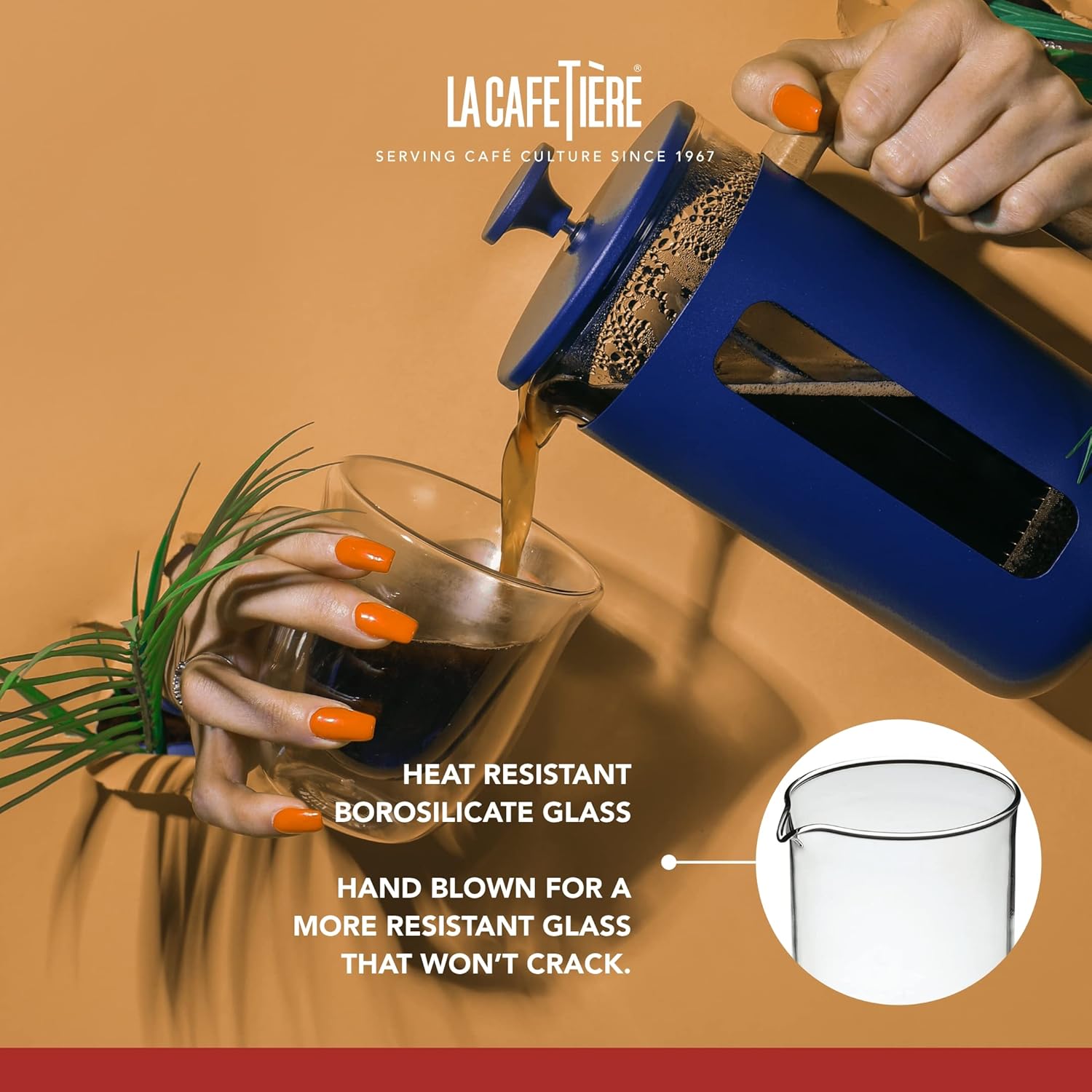 La Cafetière Pisa Cafetière, 8-Cup/1L, Heat-Resistant Borosilicate Glass and Stainless Steel with Easy-Grip Plunger, Large French Press Coffee Maker for Loose Tea and Ground Coffee, Navy