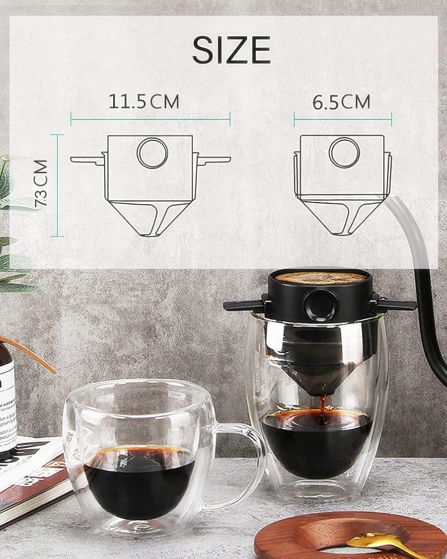 Portable Pour Over Coffee Maker 1-2 Cup, Stainless Steel Portable Coffee Filter, Reusable Mug Coffee Dripper Filter for Home Office Travel
