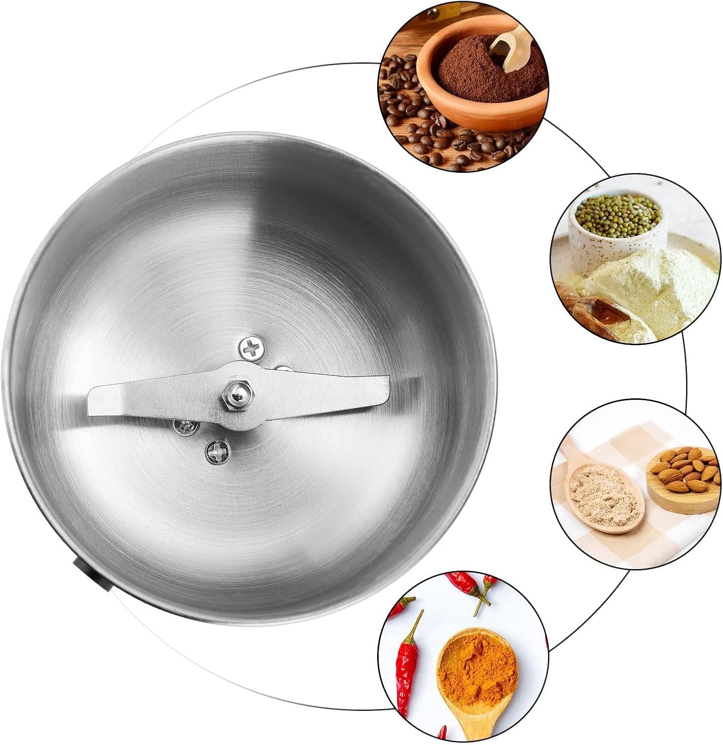 Holdfiturn 150W Stainless Steel Electric Coffee Grinder – Overheat Protection Spice Grinder for Coffee Beans, Nuts, Spices, Seeds, and Grains