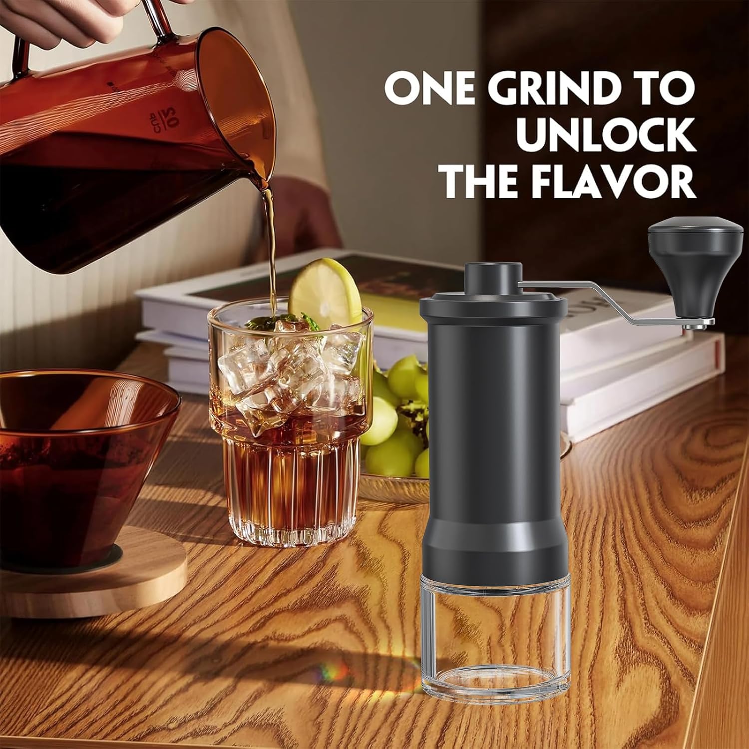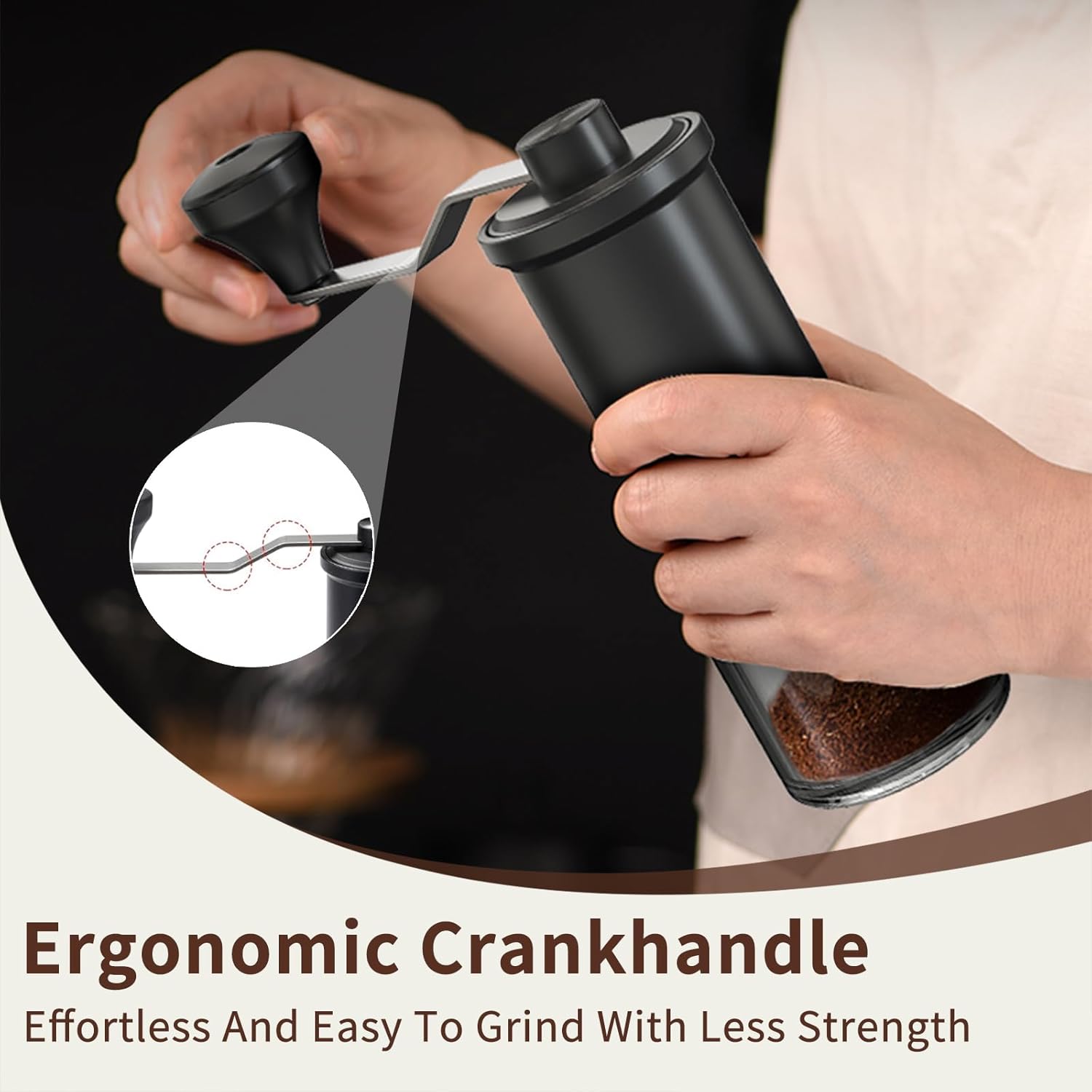 【Lightweight and labour-saving ergonomic design】- Adopting streamlined body design, comfortable grip operation; Extended rocker design, enhance the leverage effect while saving 30% of energy, just gently turn when holding the grinding can complete the grinding.