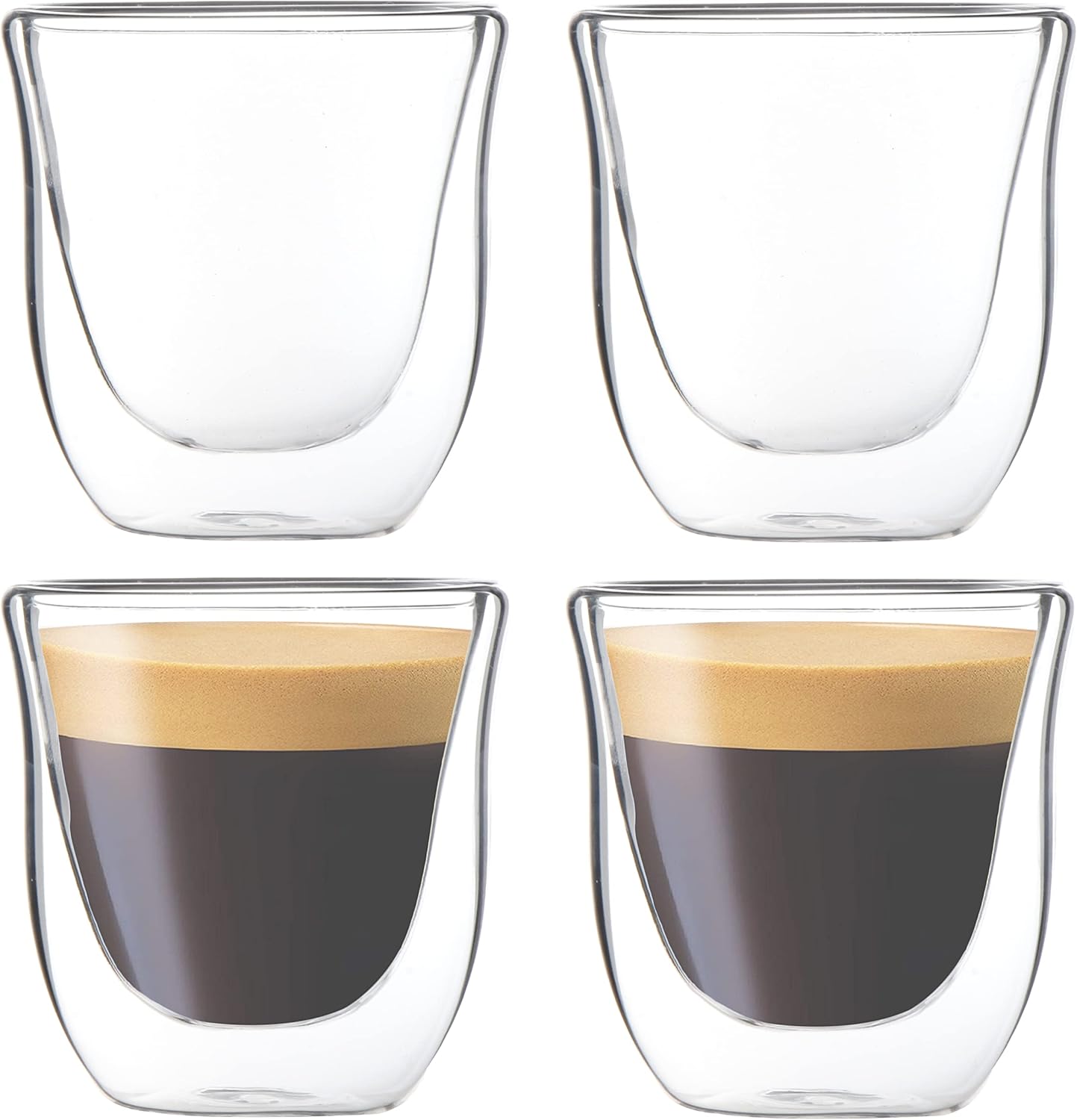 Glass Espresso Cups – 4 Pack 85ml double wall thermo mugs.