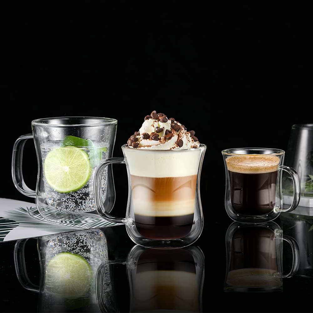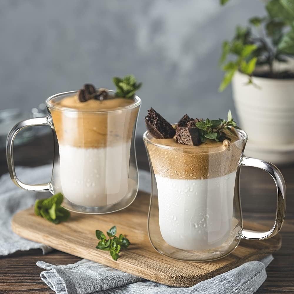 ecooe 2x240ml Double Walled Coffee Glasses Mugs Cappuccino Latte Macchiato Glasses Cups with Handle Borosilicate Heat Resistant Glass Cups for Coffee Tea Milk Juice Ice Cream