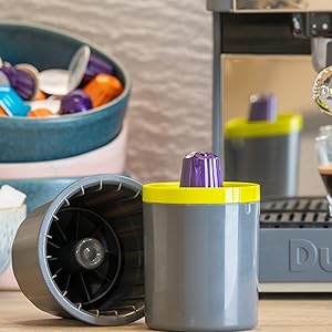 Dualit’s EcoPress offers a mess free solution to recycling used aluminium coffee capsules. Millions of aluminium coffee capsules are purchased every year and it’s vital they don’t end up in landfill. The ingenious, handheld EcoPress removes the coffee grounds from the capsules allowing for quick and easy recycling. Dualit’s EcoPress is compatible with all brands of aluminium coffee capsules (excluding capsules for professional, ‘built in’ and Nespresso* Vertuo models)